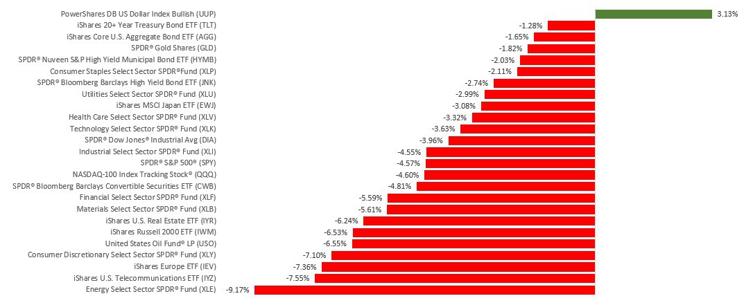 The Dow Jones Industrial Average dropped 4.00%, while the Standard & Poor’s 500 lost 4.65%. The Nasdaq Composite index fell 5.07% for the week. The MSCI EAFE index, which tracks developed overseas stock markets, declined 3.05%.