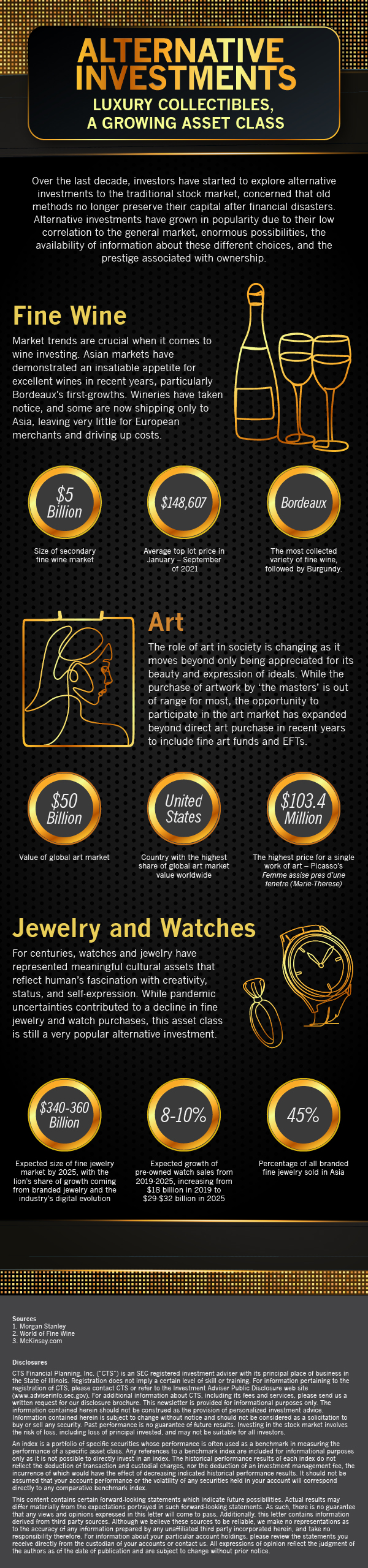 In our new infographic below, we examine a unique alternative investment category — luxury collectibles. Along with the infographic, download our latest article on alternative investments here – https://bit.ly/3gKB4KM