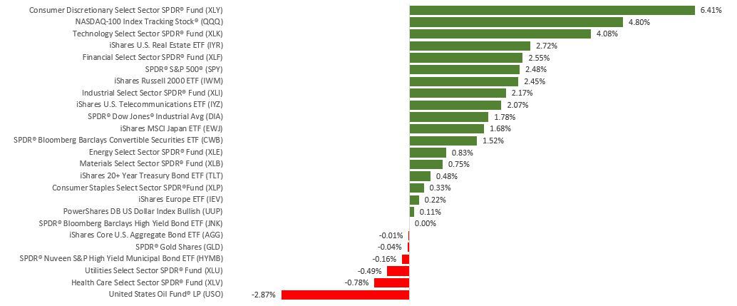The Dow Jones Industrial Average gained 1.81%, while the Standard & Poor’s 500 added 2.47%. The Nasdaq Composite index rose 4.32% for the week. The MSCI EAFE index, which tracks developed overseas stock markets, increased by 1.14%.