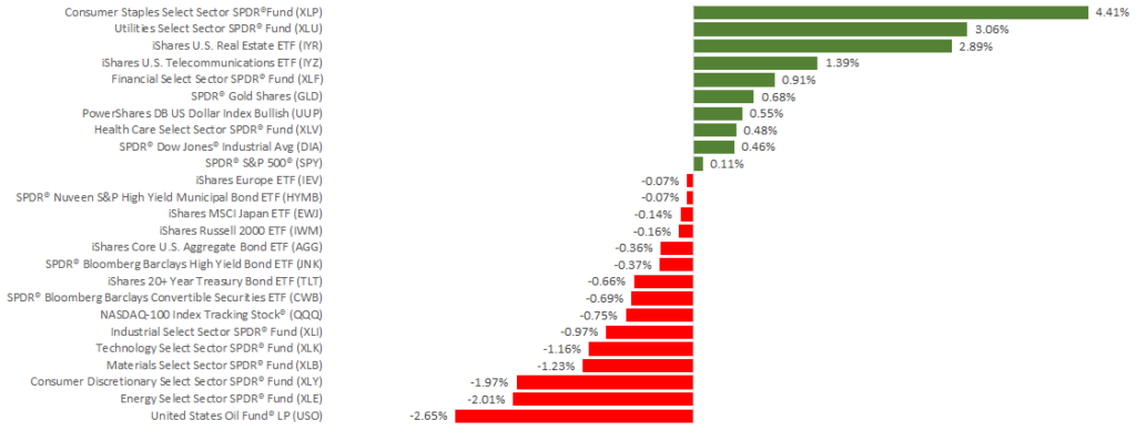 Stock performance was mixed last week as investors considered the impact of interest rates, international affairs and corporate earnings. The S&P 500 gained 0.02%, and the Dow added 0.41% to post its first weekly gains in October. The NASDAQ declined 0.64% and extended its losing streak. International stocks in the MSCI EAFE dropped by 0.08%.