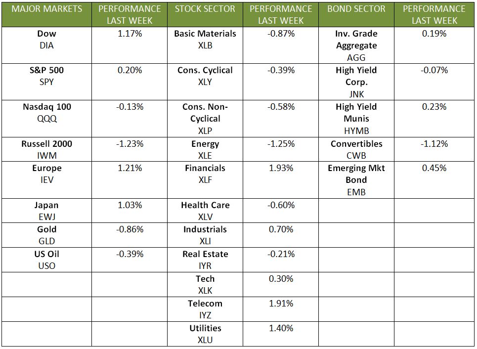 Another week of economic performance brought more news that the markets continue their bullish streak. After eight consecutive record-high closings, the Dow rose above 22,000 for the first time ever and finished the week up 1.20%. The S&P 500 was up 0.19% for the week, and the NASDAQ slightly fell by 0.36%. Meanwhile, the MSCI EAFE closed with a 0.82% increase.