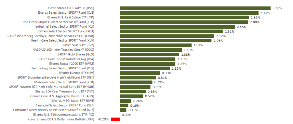 Last week closed out one of stocks’ top January performances in years. In fact, both the S&P 500 and Dow posted their best January results in at least 3 decades. For the week, major domestic indexes were also up. The S&P 500 gained 1.57%, the Dow added 1.32%, and the NASDAQ increased 1.38%. The Dow’s performance marked its 6th week of gains in a row. Internationally, MSCI EAFE stocks also posted growth, rising 0.91%.