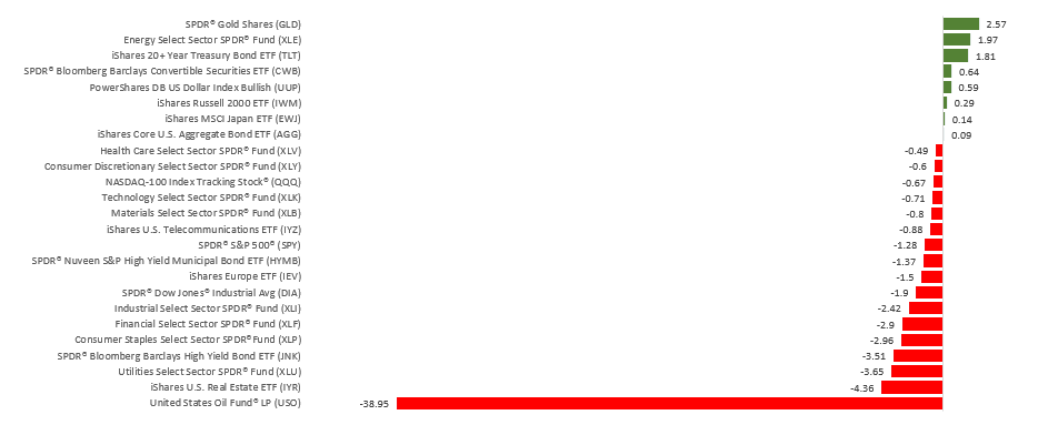 The Dow Jones Industrial Average retreated 1.93%, while the Standard & Poor’s 500 lost 1.32%. The Nasdaq Composite Index slipped 0.18%. The MSCI EAFE Index, which tracks developed overseas stock markets, declined 1.21%.