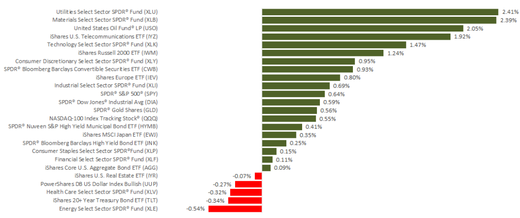 Stocks rallied last week as optimism about a potential U.S.-China trade deal grew. The S&P 500 advanced 0.80% during the 4-day trading week to 2,792.67. The Nasdaq Composite improved 0.86% to 7,527.54, and the Dow Jones Industrial Average gained 0.64% to 26,031.81.