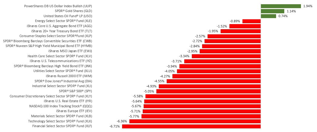 The Dow Jones Industrial Average lost 4.58%, while the Standard & Poor’s 500 dropped 5.05%. The Nasdaq Composite index slid 5.60% for the week. The MSCI EAFE index, which tracks developed overseas stock markets, declined 1.81%.