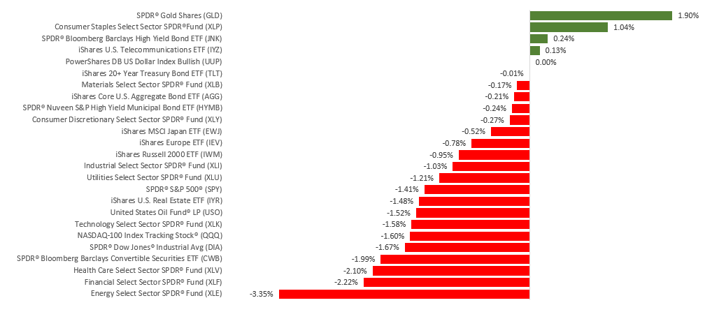 The Dow Jones Industrial Average slid 1.90%, while the Standard & Poor’s 500 declined 1.58%. The Nasdaq Composite index lost 1.76% for the week. The MSCI EAFE index, which tracks developed overseas stock markets, fell 1.00%.