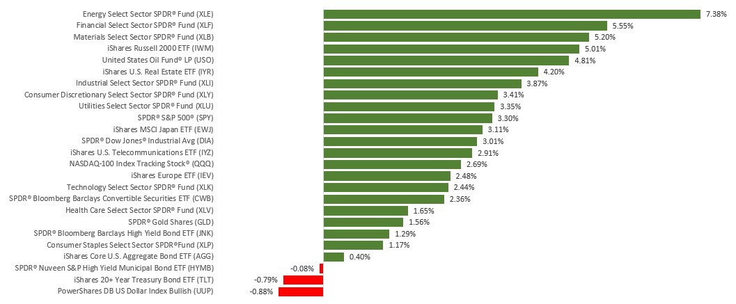 The Dow Jones Industrial Average advanced 2.92%, while the Standard & Poor’s 500 rose 3.26%. The Nasdaq Composite index added 3.08% for the week. The MSCI EAFE index, which tracks developed overseas stock markets, gained 2.39%.