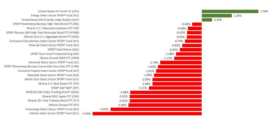 Stocks struggled as investor sentiment turned cautious amid rising bond yields. Markets were rattled initially by news that the Treasury raised its borrowing requirement for the third quarter by more than a quarter of a trillion dollars and on news that the Bank of Japan announced it would allow bond yields to rise after years of capping them.