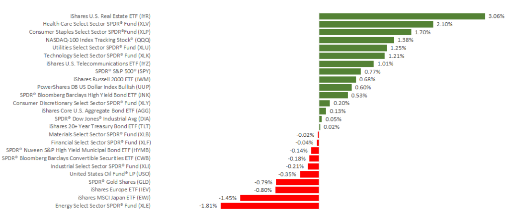 Domestic markets ended last week in positive territory, as the S&P gained 0.76%, the Dow was up 0.05%, and the NASDAQ increased 0.96%. This performance marked the 5th week in a row that the S&P 500 and Dow posted gains. Meanwhile, international stocks in the MSCI EAFE stumbled, losing 1.47% for the week.