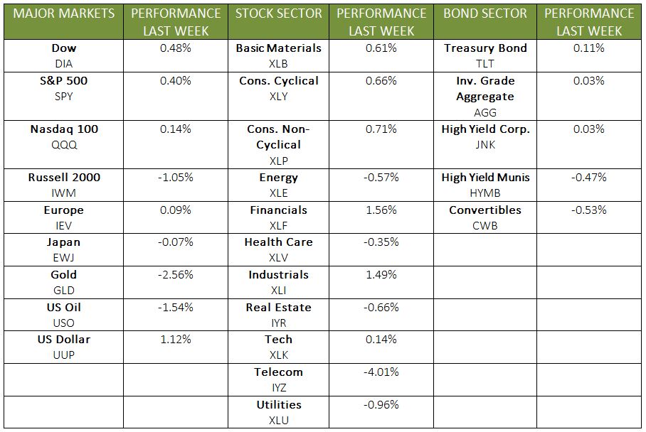 As the holiday season progresses, the markets continue to impress. Last week, many energy, financial, and industrial sector stocks helped drive performance. Hitting record highs yet again, the S&P gained 0.35%, and the Dow jumped 0.40% for the week. Meanwhile, the NASDAQ fell slightly by 0.11%, and the MSCI EAFE rose 0.08%.