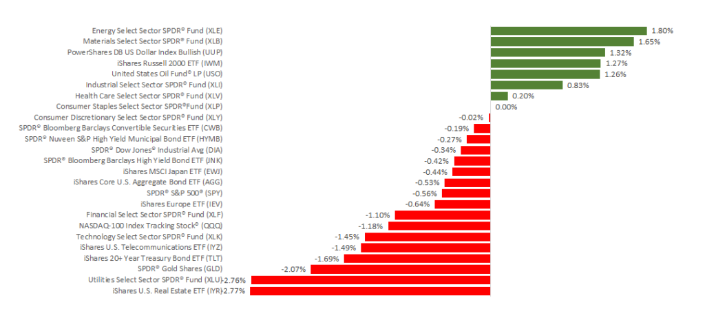 Major domestic indexes went down last week after all three gained more than 2% the previous week. The S&P 500 dropped 0.54%, the Dow gave back 0.47%, and the NASDAQ lost 0.66%. International stocks also stumbled; the MSCI EAFE decreased by 0.61%.