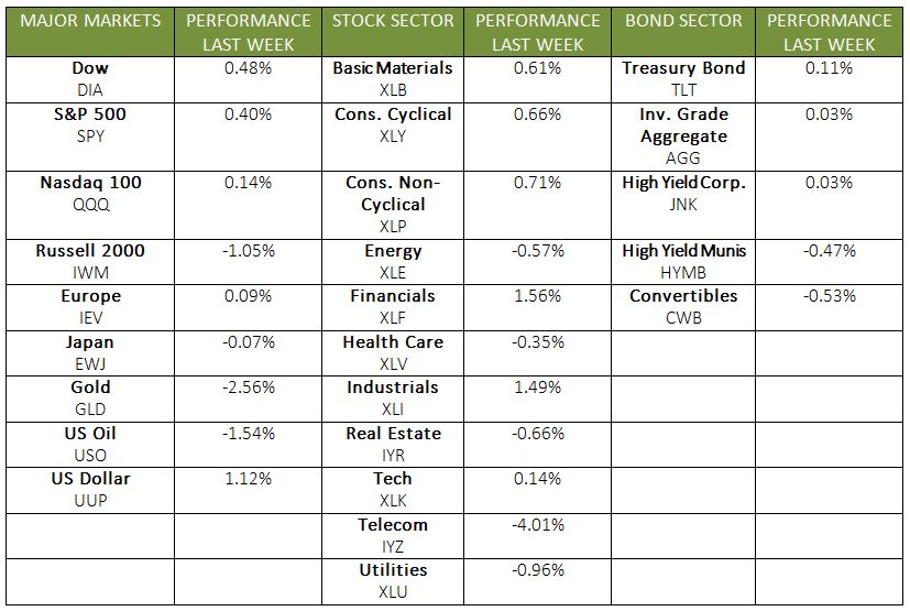 Domestic markets were up last week as tax reform became more likely. On Friday, several previously undecided Senators announced they would back the combined House and Senate bill, and stocks reacted by hitting new record highs. For the week, the S&P 500 gained 0.92%, the Dow added 1.33%, and the NASDAQ grew by 1.41%. International stocks in the MSCI EAFE increased 0.13%.
