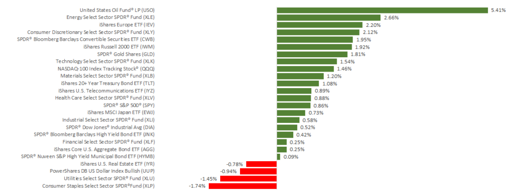 In fact, both the S&P 500 and NASDAQ closed last week with new record highs. The S&P 500 added 0.86%, the Dow increased 0.47%%, and the NASDAQ gained 1.66%. International stocks in the MSCI EAFE also grew, increasing 1.52% for the week.