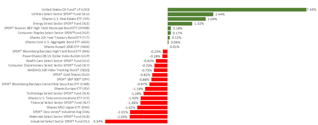 Stocks stumbled across the globe last week as trade tensions continued to escalate. Despite rebounding somewhat on Friday, the S&P 500 experienced its first weekly loss in a month, and the Dow posted its worst week since March. The S&P 500 dropped 0.89%, the Dow lost 2.03%, and the NASDAQ fell 0.69%. International stocks in the MSCI EAFE gave back 0.98%.