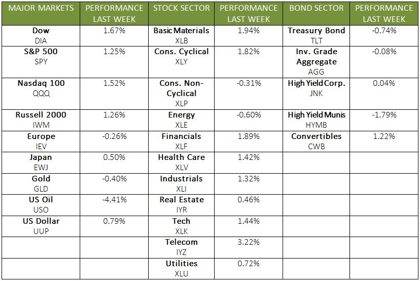 In fact, last week, markets posted one record high after another—and the S&P 500 had its longest streak of record closes since 1997. At the markets’ close, the S&P 500 added 1.19%, the Dow gained 1.65%, and the NASDAQ grew by 1.45%. International stocks in the MSCI EAFE lost 0.07%.