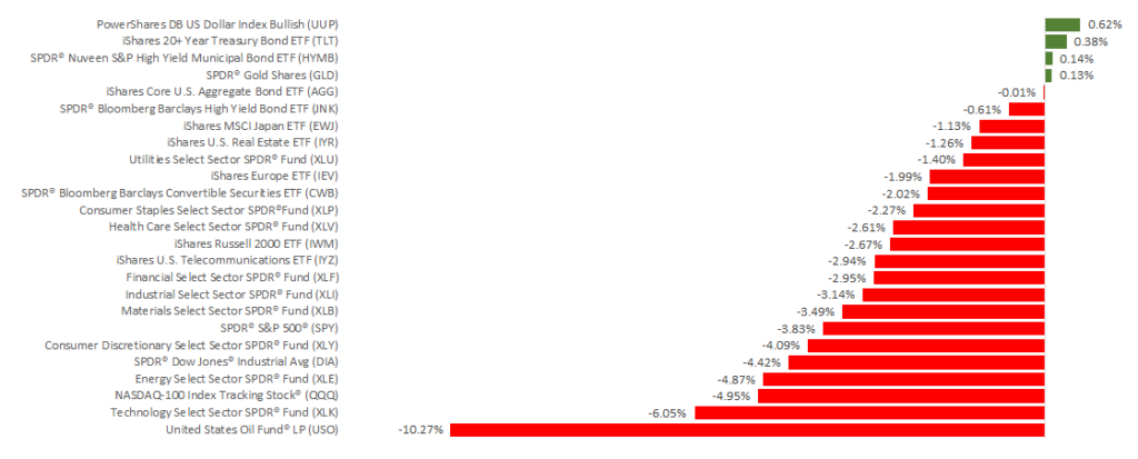 Last week was a tough one for markets. The S&P 500 dropped 3.79% and experienced its worst results during a Thanksgiving week since 1939. While the index officially entered correction territory on Friday, it closed 10.2% below its most recent record high. Meanwhile, the Dow and NASDAQ continued the downward trend, losing 4.44%, and 4.26%, respectively. International stocks in the MSCI EAFE also declined, posting a 1.12% loss.